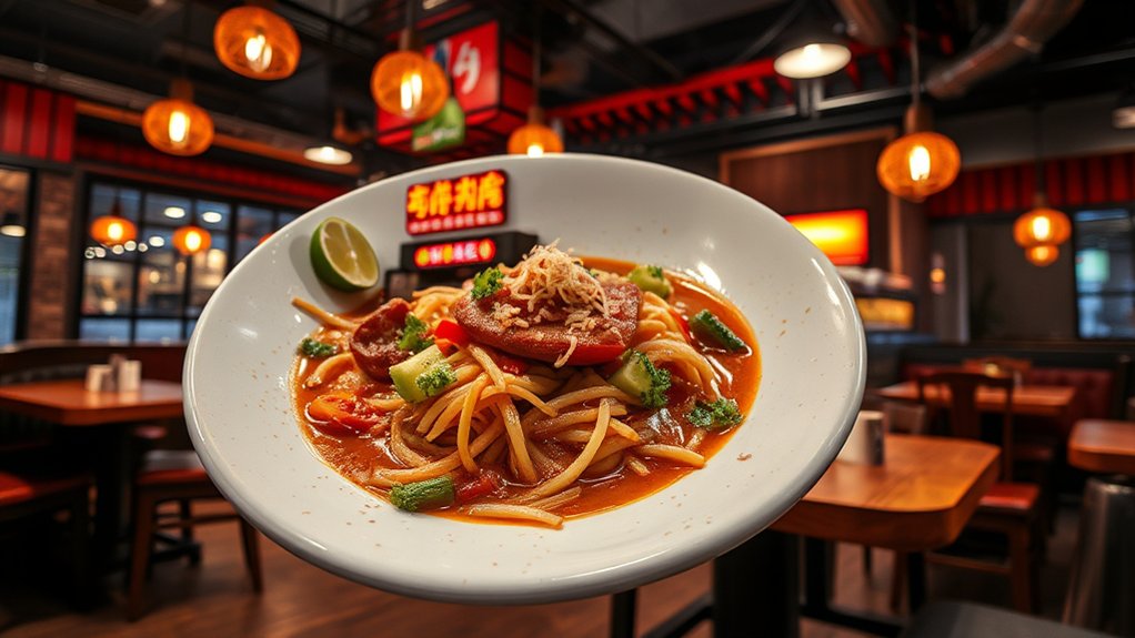 As you investigate these spots, you’ll encounter a fascinating Culinary Fusion, where authentic dishes meet local tastes without losing their core. This transformation owes much to Thai American communities, especially in cities like Los Angeles, who’ve guaranteed authenticity while inviting innovation.